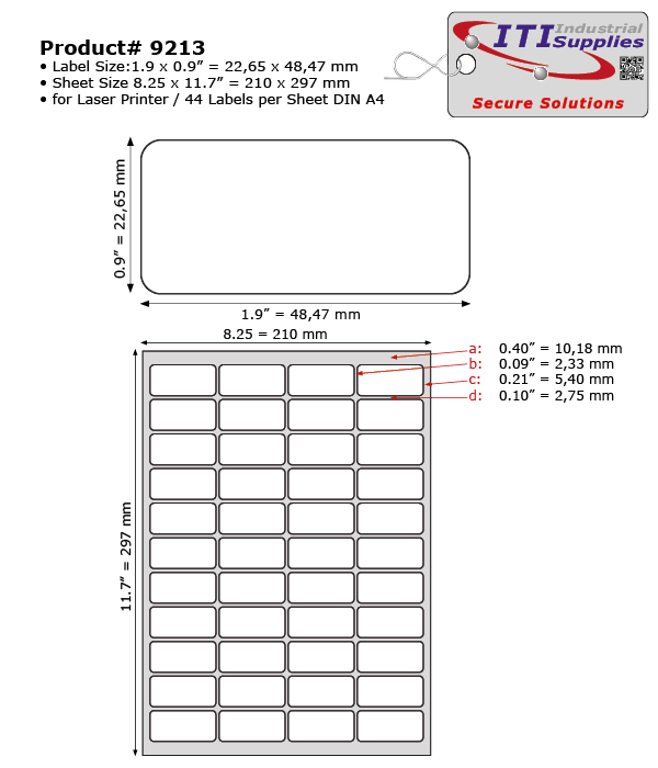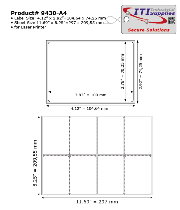out of durable, weather and heat resistant plastics, labels also with supersticky industry adhesives. Surface Shield Technology covers printing, chemical agents, dirt, oil peel off. For maximum compatibility, even with all imported laser printers, they are die cut in the international A4 formats.