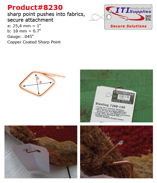 Las soluciones seguras de identificación también requieren una fijación 100 por ciento segura. No tiene sentido poseer la mejor etiqueta si se pierde por causa de una fijación inadecuada. ITI Industrial Supplies cuenta con una gama amplia de productos a bajo costo para suplir sus requerimientos. Los diseños y materiales son mejorados permanentemente para responder a demandas específicas. Pregunte por una recomendación sobre un diseño de un gancho que responda a sus necesidades. Igualmente podemos proveerle cotizaciones con valores competitivos para reemplazar sus soluciones actuales. Manifiéstenos sus inquietudes! estaremos complacidos de asesorarle. Siéntase en libertad de contactarnos si tiene preguntas